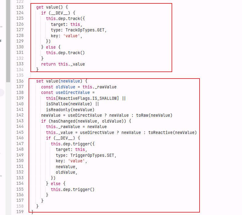 - ref需要通过后缀.value是因为不管访问还是设置,只有对其属性操作才能触发get和set