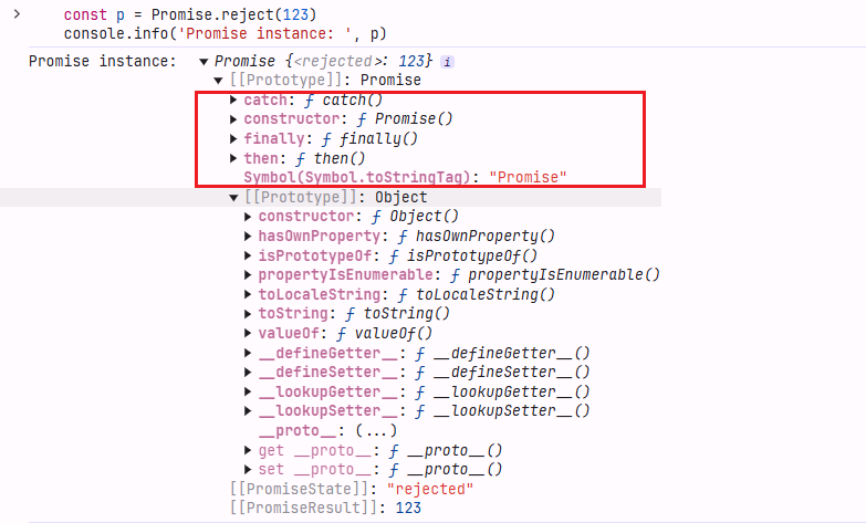 Promise.reject(123).then(res => console.info('then: ', res)).catch(error => console.info('catch: ', error));try