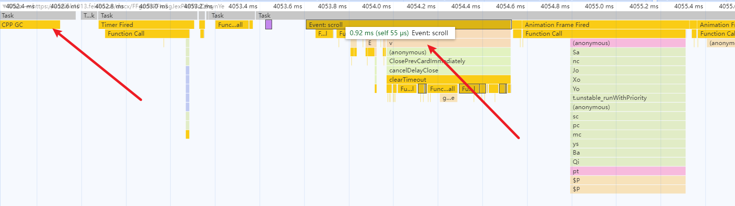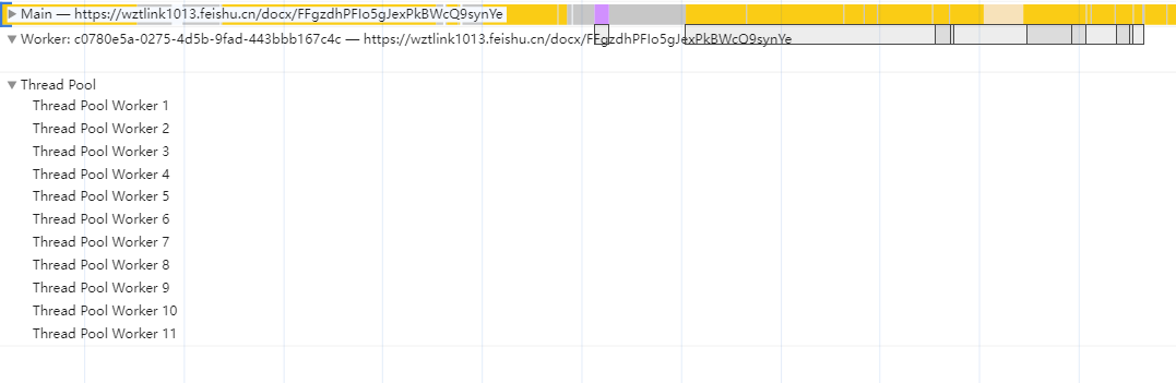 - 飞书文档编辑器的渲染是利用虚拟滚动来进行优化的,对于每一次滚动过程中的各个滚动item的状态做了很好的保留,每次的滚动事件触发所耗费时间很短,主线程存在CPP GC垃圾回收释放内存的过程,线程池中也开了多个子线程在工作
